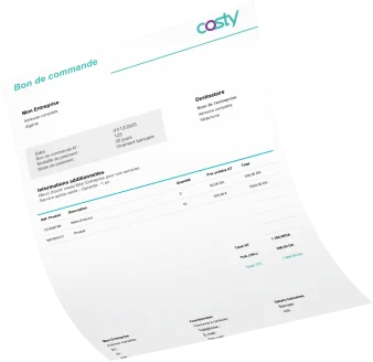 Pour créer vos bons de commande rapidement, de manière claire et conforme à la législation, vous pouvez télécharger notre modèle ou utiliser Costy pour générer vos documents professionnels automatiquement, avec 15 jours d’essai gratuit.
