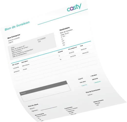 Gérer correctement vos bons de livraison est essentiel pour sécuriser vos transactions, éviter les litiges et rester conforme à la législation algérienne. Avec Costy, cette tâche devient simple et fiable : le logiciel vous assure la conformité légale de vos documents tout en offrant une utilisation intuitive. Vous pouvez facilement créer, modifier et convertir vos bons de livraison, factures et proformas en quelques clics, ce qui facilite la gestion commerciale et la traçabilité de vos opérations.